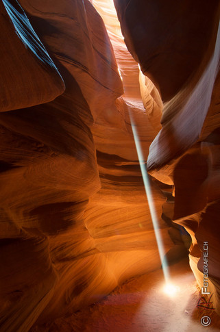 Im 2013 bereisten wir den Westen der USA. Kurz davor habe ich mir eine DSLR gekauft. Bis dahin hatte ich noch wenig Ahnung von Fotografie. So reiste ich auch ohne Stativ oder Fernauslöser im Gepäck. Als klar war, dass wir den Antelope Canyon besuchen werden, machte ich mir Gedanken, wie ich dort gute Bilder bekomme. Schnell war mir klar, dass ich ohne Stativ hier ziemlich chancenlos wäre. Was nun? Im Supermarkt habe ich ein Stativ für 23 Dollar gefunden. Ein Plastikmüll, der alles andere als stabil war. Nun - ich musste das Beste daraus machen ;-). Mit Spiegelvorauslösung und Selbstauslösung hat es trotz dem bescheidenen Equipment doch ansehliche Bilder gegeben. Die Fototour selbst war extrem stressig. Sie kostete das Doppelte und fand genau in der Mittagsstunde statt, in welcher die Sonne exakt durch die Öffnungen des Canyons scheint. Da wir nicht die Einzigen waren im Canyon, war es immer sehr hektisch und wir hatten nur kurze Zeit, um Bilder zu schiessen, ohne dass Personen auf den Bildern zu sehen sind...trotzdem hat es mir viel Spass gemacht!